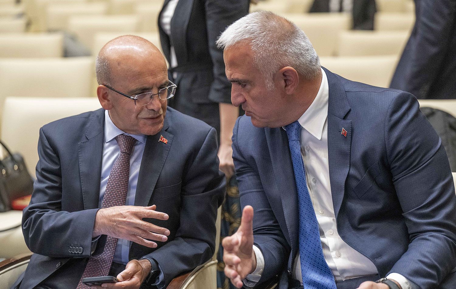 Hazine ve Maliye Bakanı Mehmet Şimşek (solda), Kültür ve Turizm Bakanı Mehmet Nuri Ersoy ile (sağda) / AA