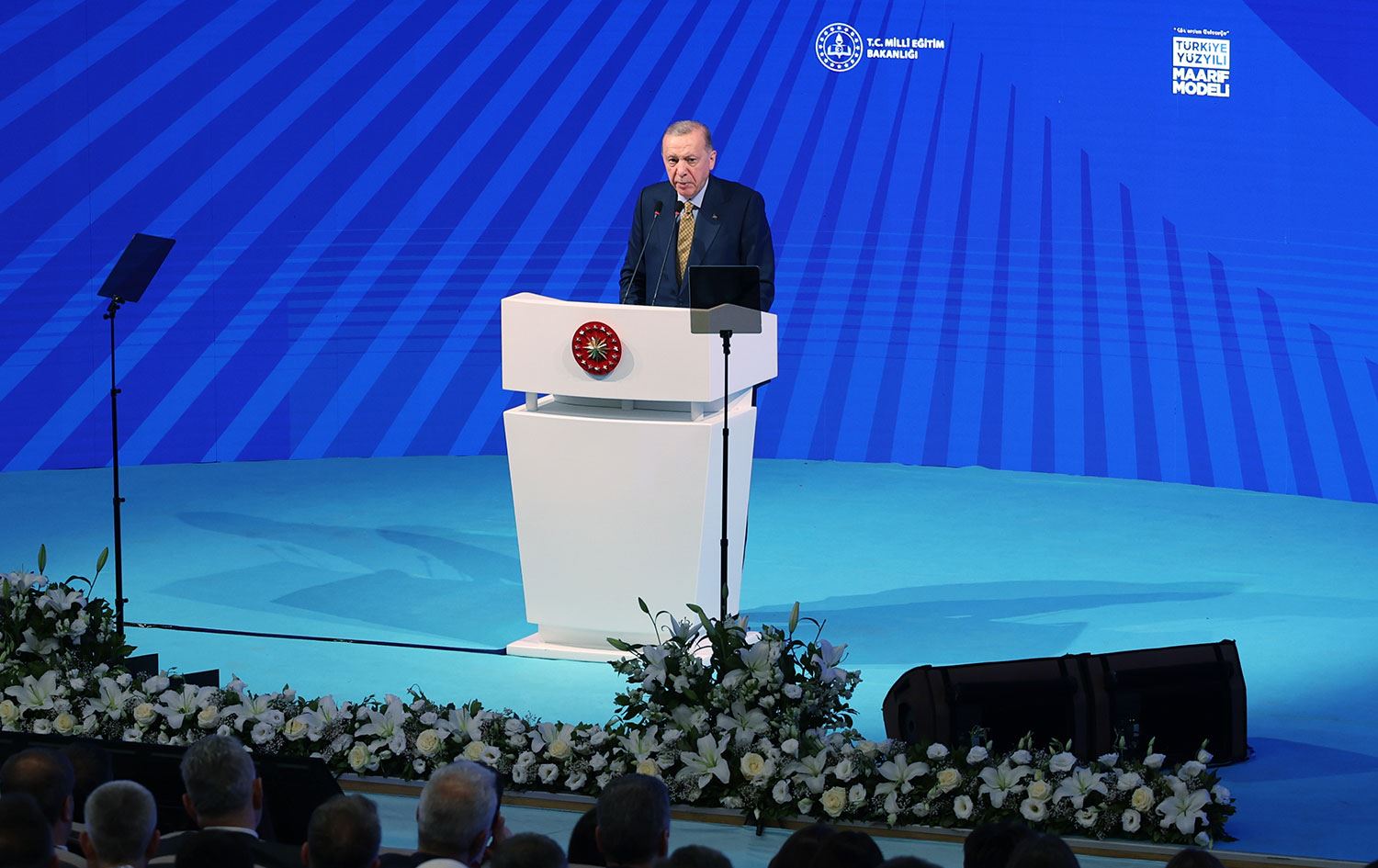 Erdoğan, Maarif Modeli için, "Ders içerikleri uygulama ağırlıklı yapılandırıldığından öğrencilerin üst düzey düşünme kabiliyetleri gelişmiş olacaktır. Dijital okuryazarlık başta olmak üzere okuryazarlık becerileri daha da ilerleyecektir. Maarif Modeli ile Türkçemiz bütün alanlarla irtibatlandırılmış, merkezi konuma oturtulmuş olacaktır. Müfredat içeriği bilim, teknoloji ve çevre ile bağlantılı bir yapı esas alınarak kurgulanmıştır. Tüm bu çalışmaların nihai gayesi, evlatlarımızı ruh, kalp ve beden bütünlüğünde ahlaklı, üretken, iradeli, üretken, merhametli, vatansever, sorgulayıcı, yetkin ve erdemli insanlar olarak yetiştirmektir" dedi.
