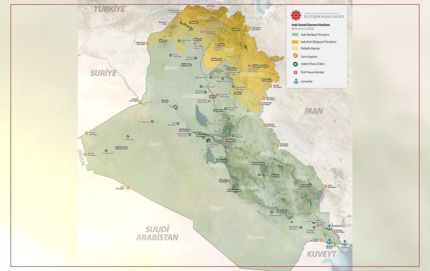 Türkiye İletşim Başkanlığı '06 Temmuz 2020 tarihi itibarıyla Irak genel durum haritası'nı paylaştı