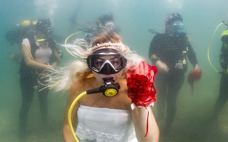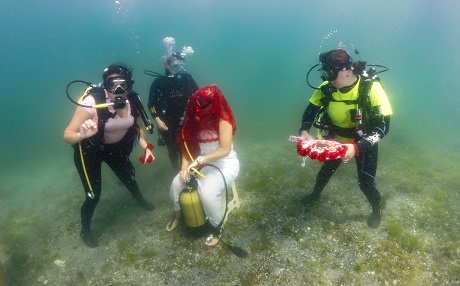 Dünyaevine girmeye hazırlanan Beylikdüzü Sualtı Sporları Kulübü öğrencilerinden Seyhan Acar ve Erdinç Çoruhlu, farklı bir tercih yaparak kına gecesini su altında yapmaya karar verdi.