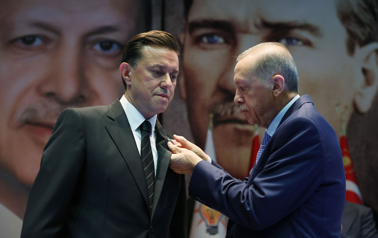 Cumhurbaşkanı Erdoğan, toplantı öncesi partisine katılan Eskişehir Milletvekili İdris Nebi Hatipoğlu'na rozet taktı.