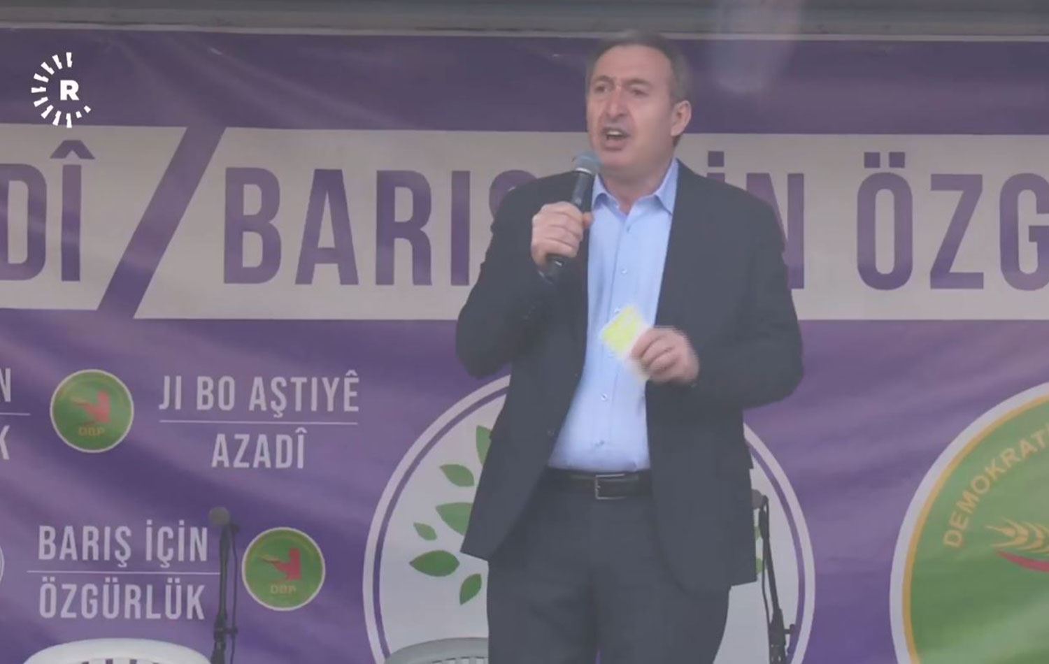 DEM Parti Eş Genel Başkanı Tuncer Bakırhan, Diyarbakır mitinginde konuştu. / Video alıntısı / Rûdaw