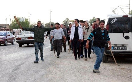 Pamukyazı'da gergin geçen gecenin ardından mahalle sakini 300 kişilik bir grup, bu sabah toplanarak ellerindeki sopalarla Suriyelilerin kaldığı bölgeye gitmeye başladı. Durumu fark eden Suriyeliler ise çadırları terk ederek hızla bölgeden uzaklaştı.