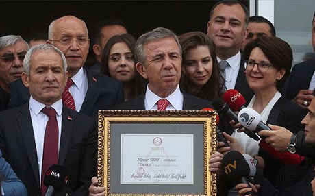31 Mart Mahalli İdareler Genel Seçimlerinde Ankara Büyükşehir Belediye Başkanı seçilen CHP adayı Mansur Yavaş, eşi Nursen Yavaş, TBMM Başkanvekili Levent Gök, Çankaya Belediye Başkanı Alper Taşdelen, Yenimahalle Belediye Başkanı Fethi Yaşar ve CHP İl Başkanı Rıfkı Güvener ile geldiği Ankara Adliyesinde İl Seçim Kurulundan mazbatasını aldı.