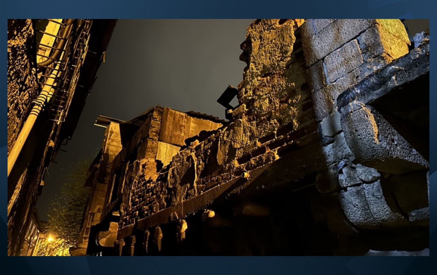 O esnada metruk yapının yan tarafında bulunan ev zarar gördü. İhbar üzerine olay yerine polis ve zabıta ekipleri sevk edildi. Olayda yaralanan olmazken, ekipler zarar gören evin ve metruk yapının çevresine şerit çekerek önlem aldı.