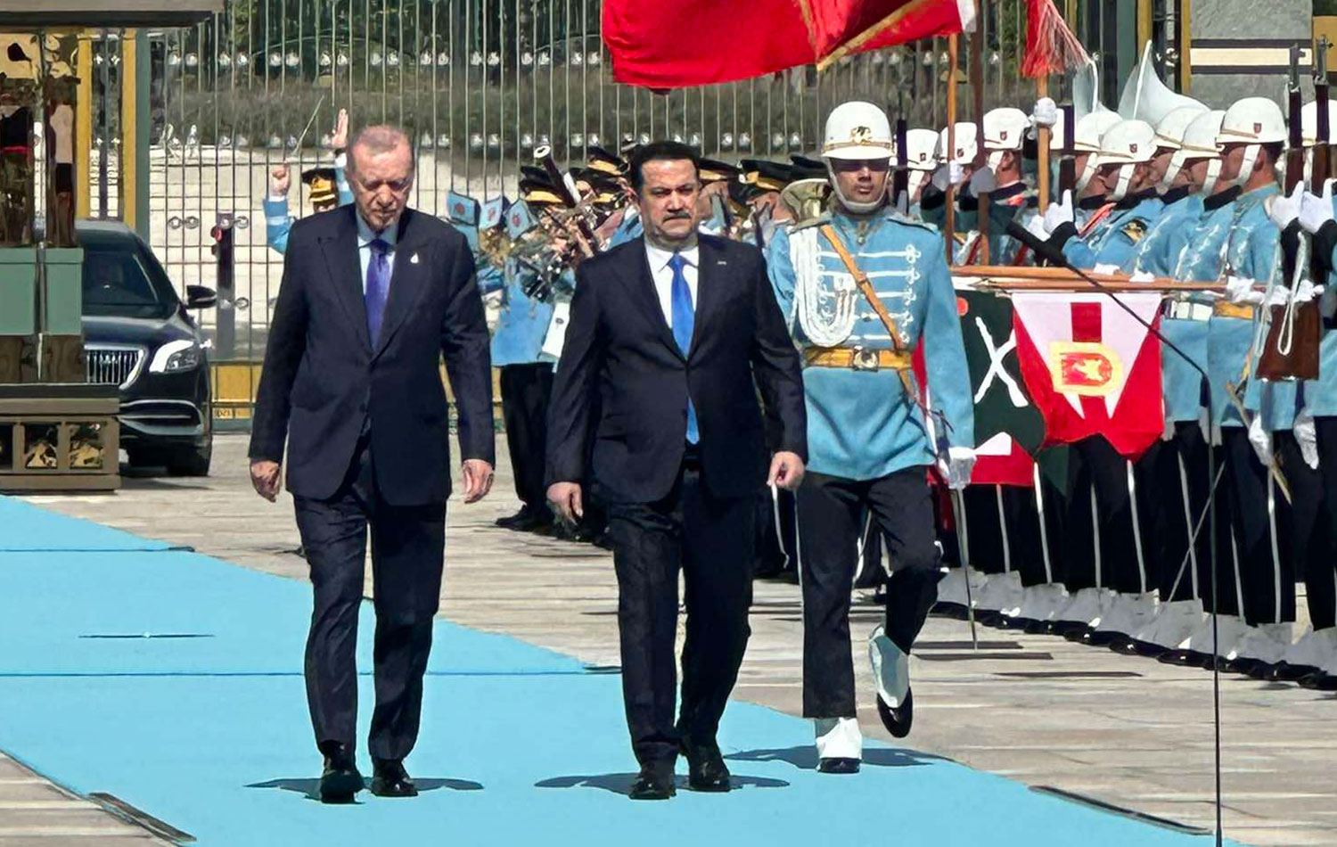 Ankara (Rûdaw) – Türkiye Cumhurbaşkanı Recep Tayyip Erdoğan, resmi temaslarda bulunmak üzere Ankara’ya gelen Irak Başbakanı Muhammed Şiya es-Sudani’yi Cumhurbaşkanlığı Külliyesi’nde resmi törenle karşıladı.