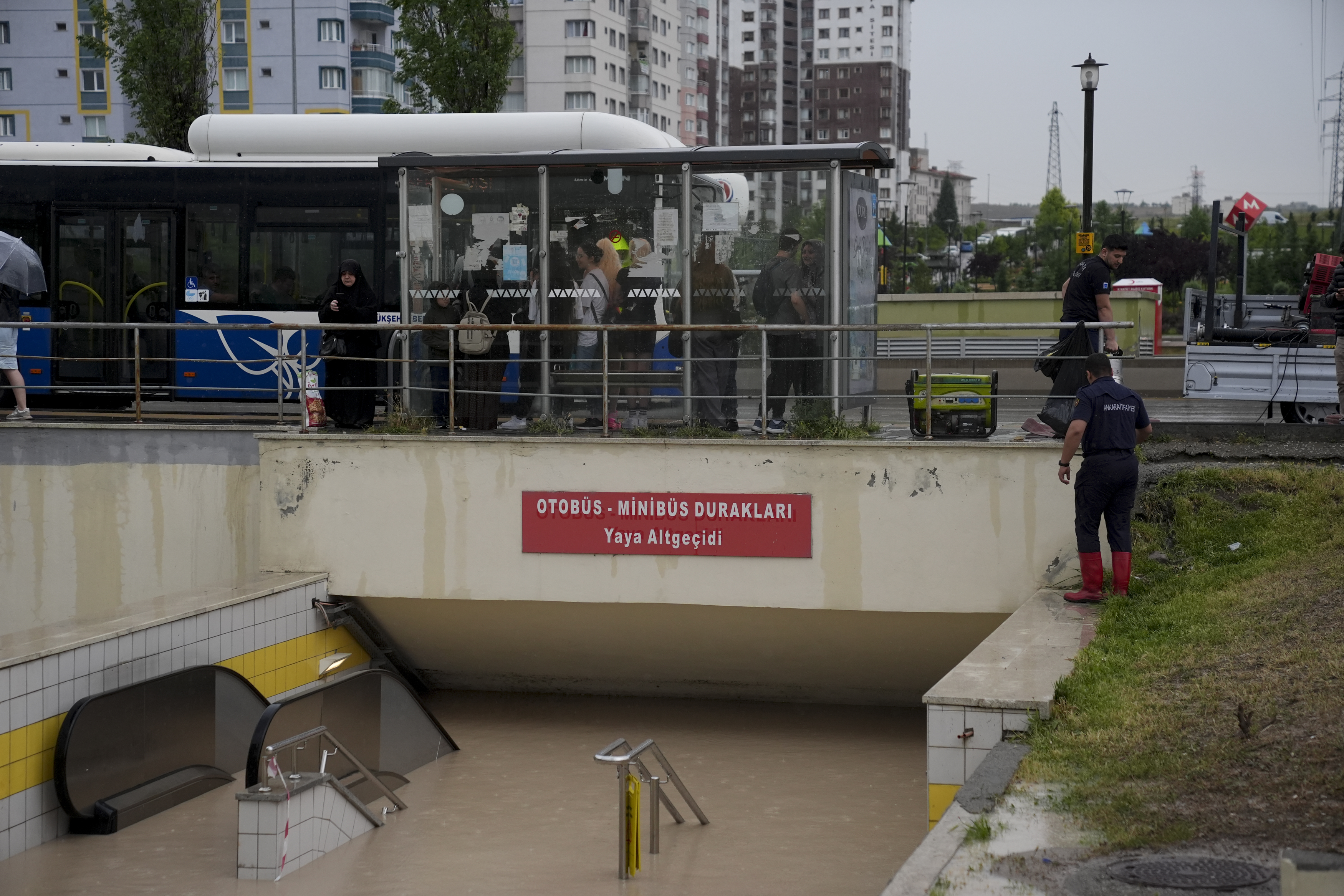 Ankara'da sağanak nedeniyle Sincan ilçesinde bazı cadde ve sokaklarda oluşan su birikintileri vatandaşlara zor anlar yaşattı. Törekent metrosunu su bastı. / AA