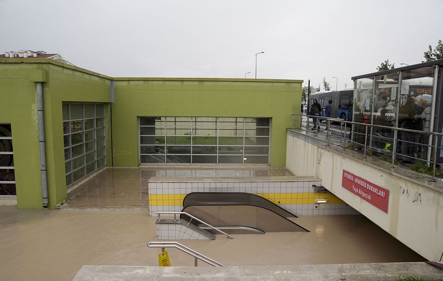 Metro girişlerini su basması nedeniyle de metro seferleri durduruldu.