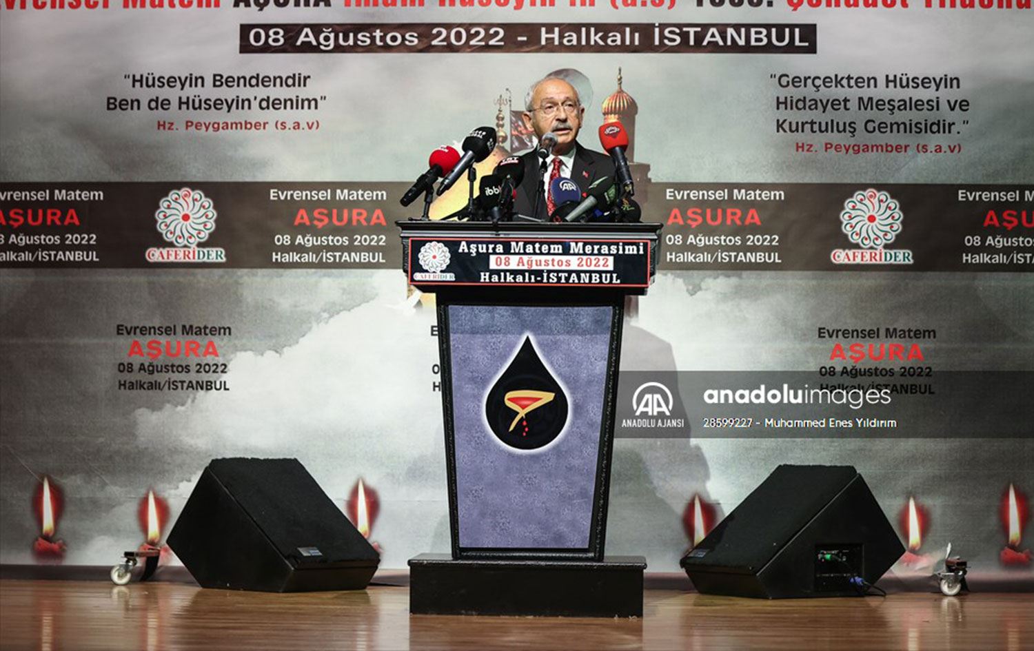 Haber Merkezi – İstanbul Küçükçekmece’de düzenlenen Aşura Matem Merasimi’ne katılan CHP Genel Başkanı Kemal Kılıçdaroğlu, “Hz. Hüseyin’in Kerbela’da temsil ettiği adaletten yanayız, adaletten tarafız” dedi.