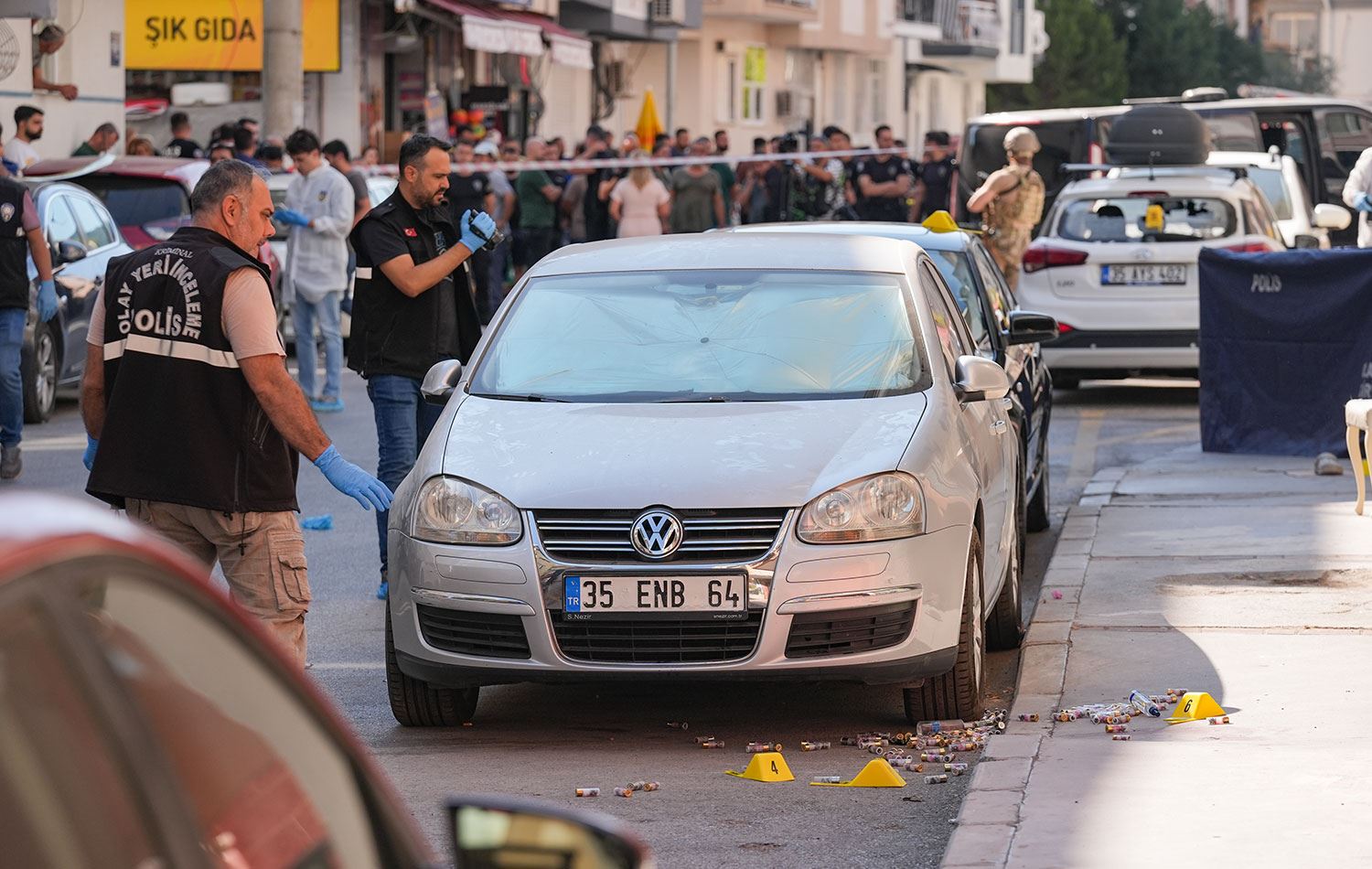Cumhuriyet Başsavcılığımızın talebi üzerine İzmir 5’inci Sulh Ceza Hakimliği'nin 08.09.2025 tarih ve 2025/10353 D. iş sayılı kararı ile meydana gelen silahlı saldırı olayı ile ilgili olarak görsel, yazılı ve internet ortamındaki her türlü medyada yayın yasağı konulmasına karar verilmiştir. Soruşturma çok yönlü ve titizlikle yürütülmektedir."
