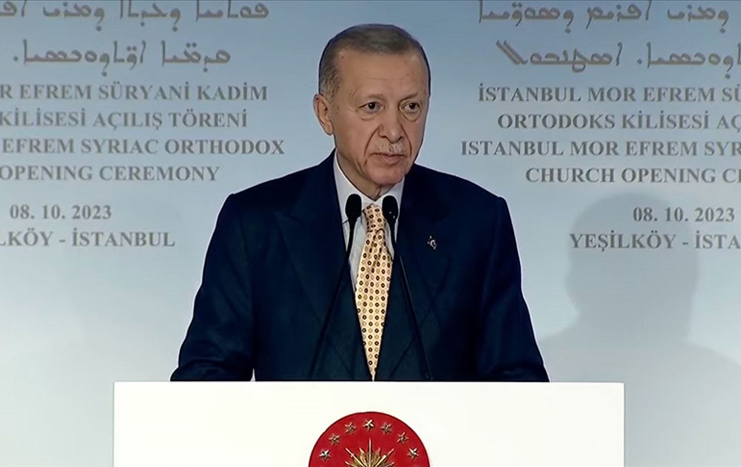Erdoğan, Cumhuriyet tarihinin ilk Süryani Kilisesi olan İstanbul Yeşilköy'deki Mor Efrem Süryani Kadim Ortodoks Kilisesi'nin açılış töreninde konuştu.