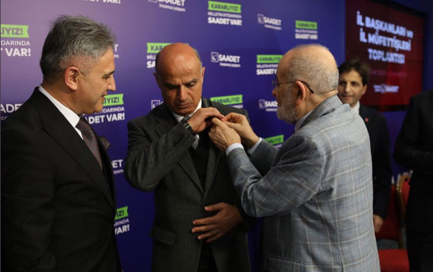 Eski Diyarbakır İl Jandarma Komutanı Tuğgeneral Mustafa Başoğlu, Saadet Partisi’ne katıldı. Başoğlu’na rozetini Saadet Partisi Genel Başkanı Temel Karamollaoğlu taktı.