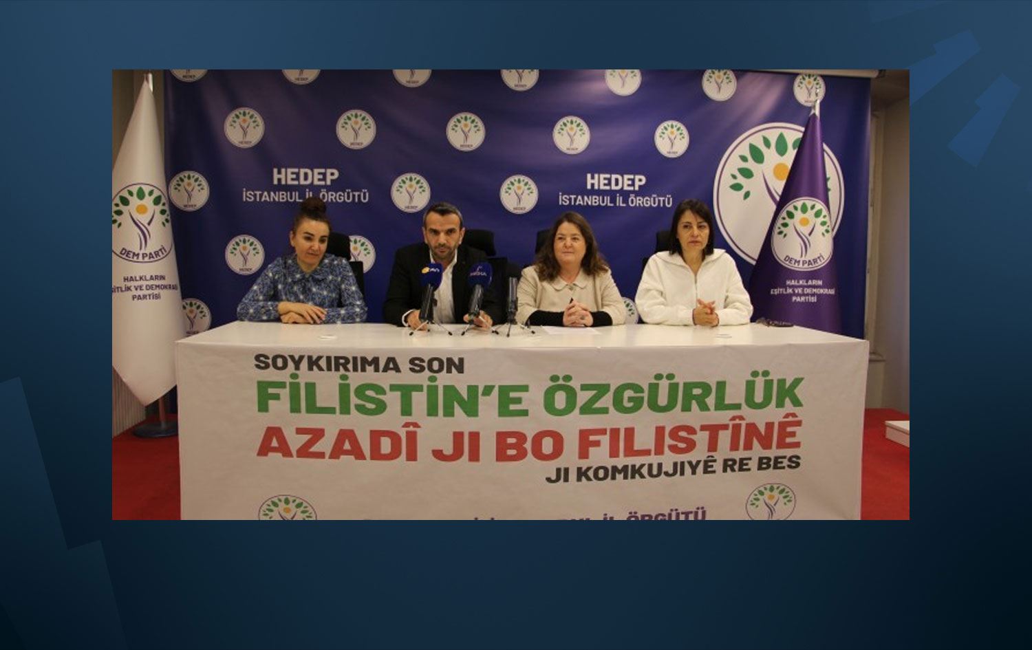 Konu ile ilgili DEM Parti İstanbul İl Örgütü’nde düzenlenen basın toplantısında konuşan DEM Parti İstanbul Milletvekili Kezban Konukçu, “Orta Doğu’da şu anda süregiden savaş ortamından kimlerin çıkarı olduğunu bizler çok iyi biliyoruz. Bu çıkar çatışamalarında kadın, çocuk demeden siviller katlediliyor. Buna karşı ezilen halkların ses çıkarması gerekiyor” dedi.