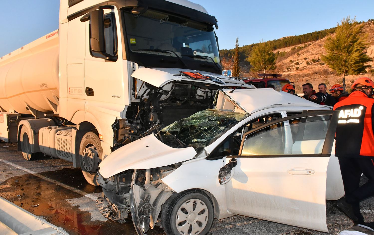 Adıyaman'da akaryakıt tankeriyle otomobilin çarpışması sonucu 4 kişi hayatını kaybetti, 4 kişi yaralandı.