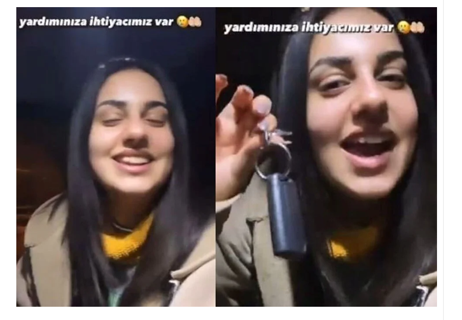 Görüntünün birinde Ankara’dan canlı yayın yapan bir kişinin "Babam enkaz altında. Allah rahmet eylesin" diyerek güldüğü, araba anahtarını da göstererek, "Ondan geriye kalan tek şey" ifadelerini kullandığını dikkat çekiyor.