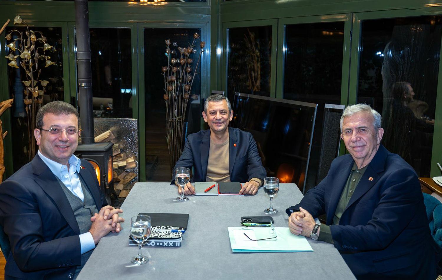 CHP'de cumhurbaşkanı adayı ve ön seçim tartışmaları gündemdeyken CHP Genel Başkanı Özgür Özel, Ekrem İmamoğlu ve Mansur Yavaş, yarın saat 12.00'de yapılacak Parti Meclisi (PM) toplantısı öncesi Ankara'da akşam yemeğinde bir araya geldi.