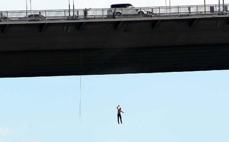 Ancak tüm çabalara rağmen, bir süre sonra üzerindeki tişörtü çıkaran Erol Çetin, kendini korkuluklardan aşağı bırakmıştı.