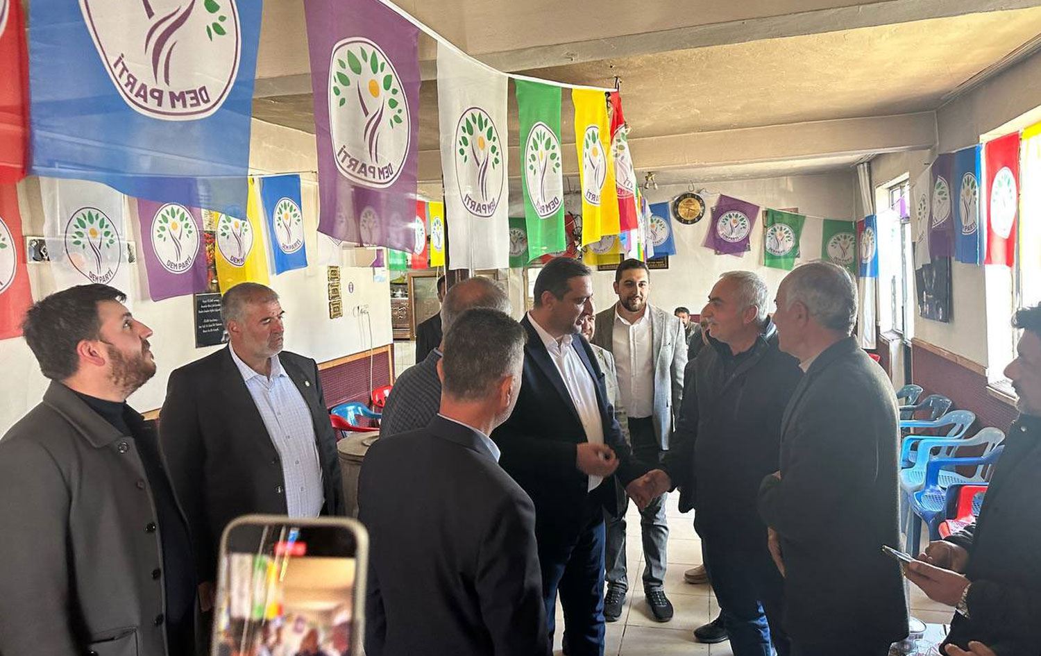 Başiri ilçesinde Ramanlı, AK Parti ve Yeniden Refah Partisi'nin ofislerinin yanı sıra DEM Parti'yi de ziyaret etti.