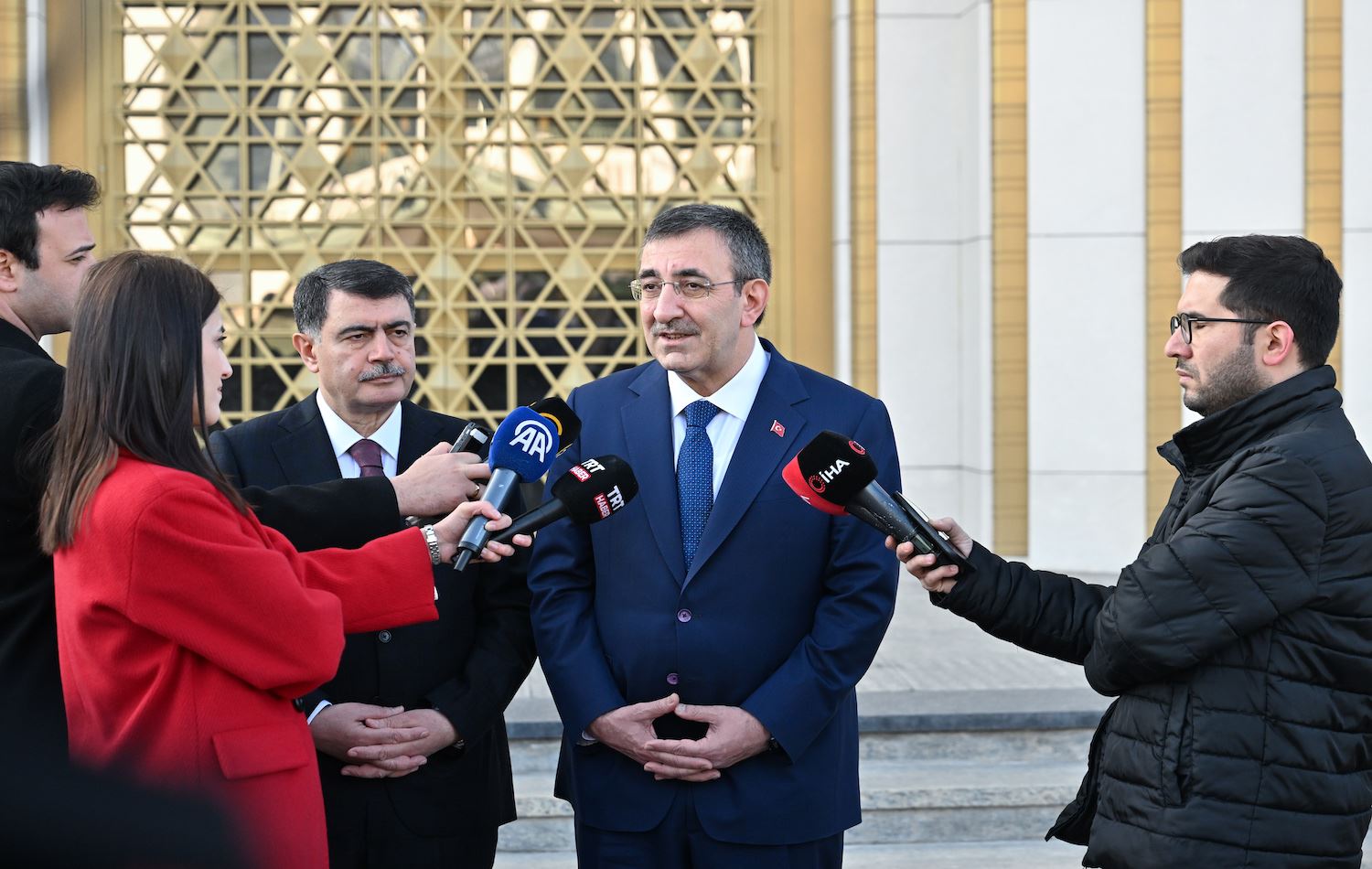 Haber Merkezi - Cumhurbaşkanı Yardımcısı Cevdet Yılmaz, Cumhurbaşkanı Erdoğan'ın DEM Parti heyetiyle görüşeceğini hatırlatarak, ''Bizim beklentimiz, en kısa sürede Terörsüz Türkiye sürecinin tamamlanması. Bölgemiz üzerindeki emperyalist oyunların boşa çıkarılması, milli birliğimizin, beraberliğimizin pekiştirilmesi'' açıklamasını yaptı.