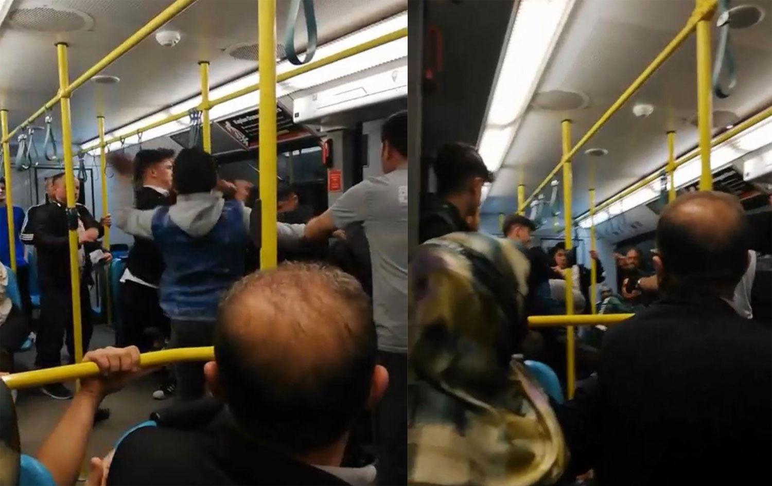 Tartışmanın kavgaya dönmesiyle metro seferleri aksarken kavgada sopalar devreye girdi.