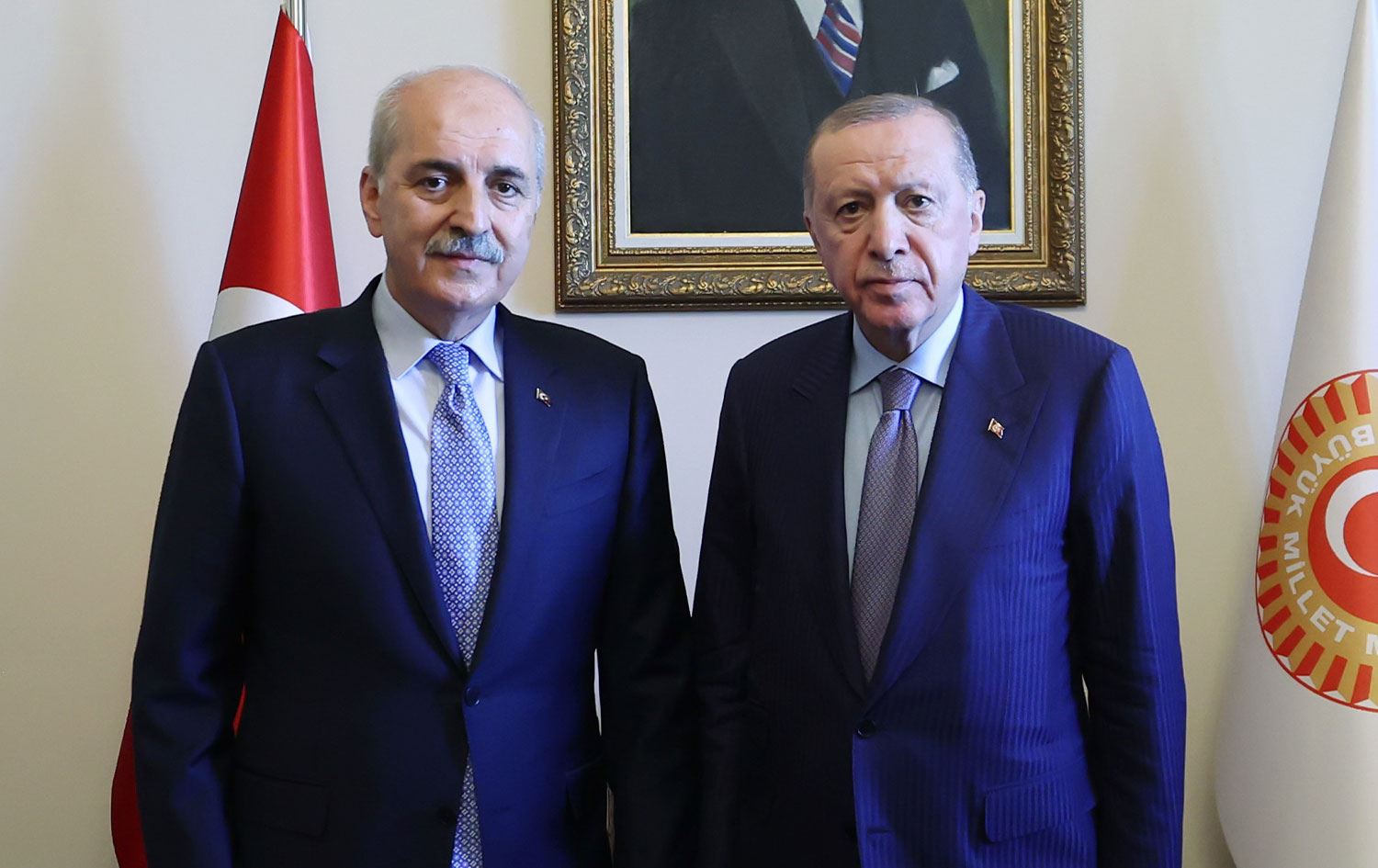 Erdoğan, TBMM Başkanı Numan Kurtulmuş'u makamında ziyaret etti.