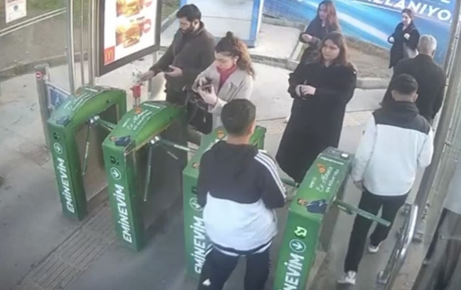 TÜBİTAK tarafından kurtarıldığı belirtilen kamera görüntülerinde ise metro turnikesine gelen şüphelilerin kaçak geçiş yapması yer alıyor.