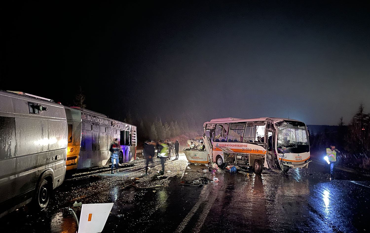 Hüseyin Ş. idaresindeki 26 BL 511 plakalı Eskişehir Büyükşehir Belediyesine ait yolcu otobüsü ile Özgür Metin Y. yönetimindeki 26 EBB 179 plakalı yine belediyeye ait yolcu midibüsü ve Aykut B'nin kullandığı 06 CRJ 562 plakalı karavan, Eskişehir-Seyitgazi kara yolu Akpınar Mahallesi mevkisinde çarpıştı.