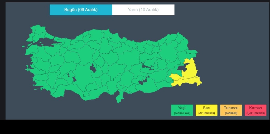 Haber Merkezi – Türkiye Meteoroloji Genel Müdürlüğü, 9 aralık hava durumu raporunu paylaştı. 4 il için sarı kodlu uyarı verdi.