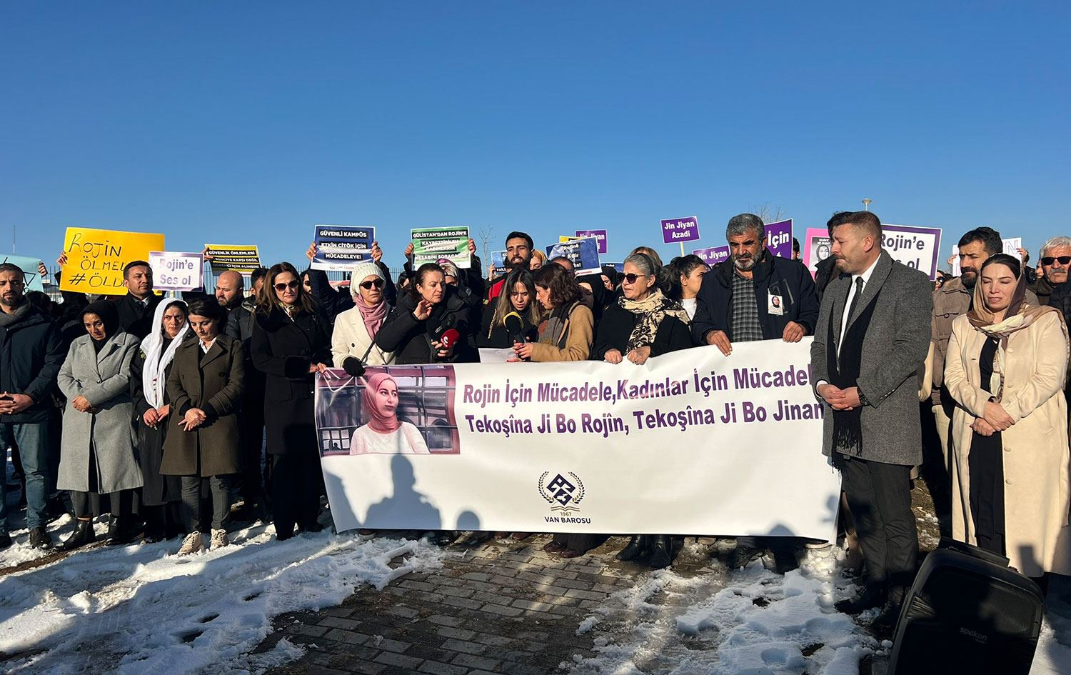 Van Baro Başkanı Sinan Özaraz, ilk günden bu yana sürecin takipçisi olduklarını kaydederek, “Buraya Rojin‘in sesi olmaya geldik. Rojin burada şüpheli bir şekilde katledildi. Dosyada halen kısıtlılık kararı devam ediyor. Kısıtlılık kararı hem ailenin dosyadaki delil durumunu öğrenme önünde bir engel hem ailenin avukatlarının etkili bir soruşturma yürütülmesini sağlamaya engel. Adil ve şeffaf bir soruşturma için kısıtlılık kararının bir an önce kaldırılmalıdır” diye konuştu