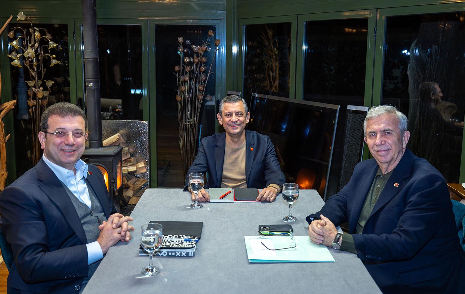 CHP Genel Başkanı Özgür Özel, İBB Başkanı Ekrem İmamoğlu ve ABB Başkanı Mansur Yavaş, CHP'nin Cumhurbaşkanı adayı ve ön seçim gündemiyle dün akşam bir araya geldi. Yavaş'ın ev sahipliğindeki görüşme saat 20.00'de başladı ve yaklaşık iki buçuk saat sürdü.