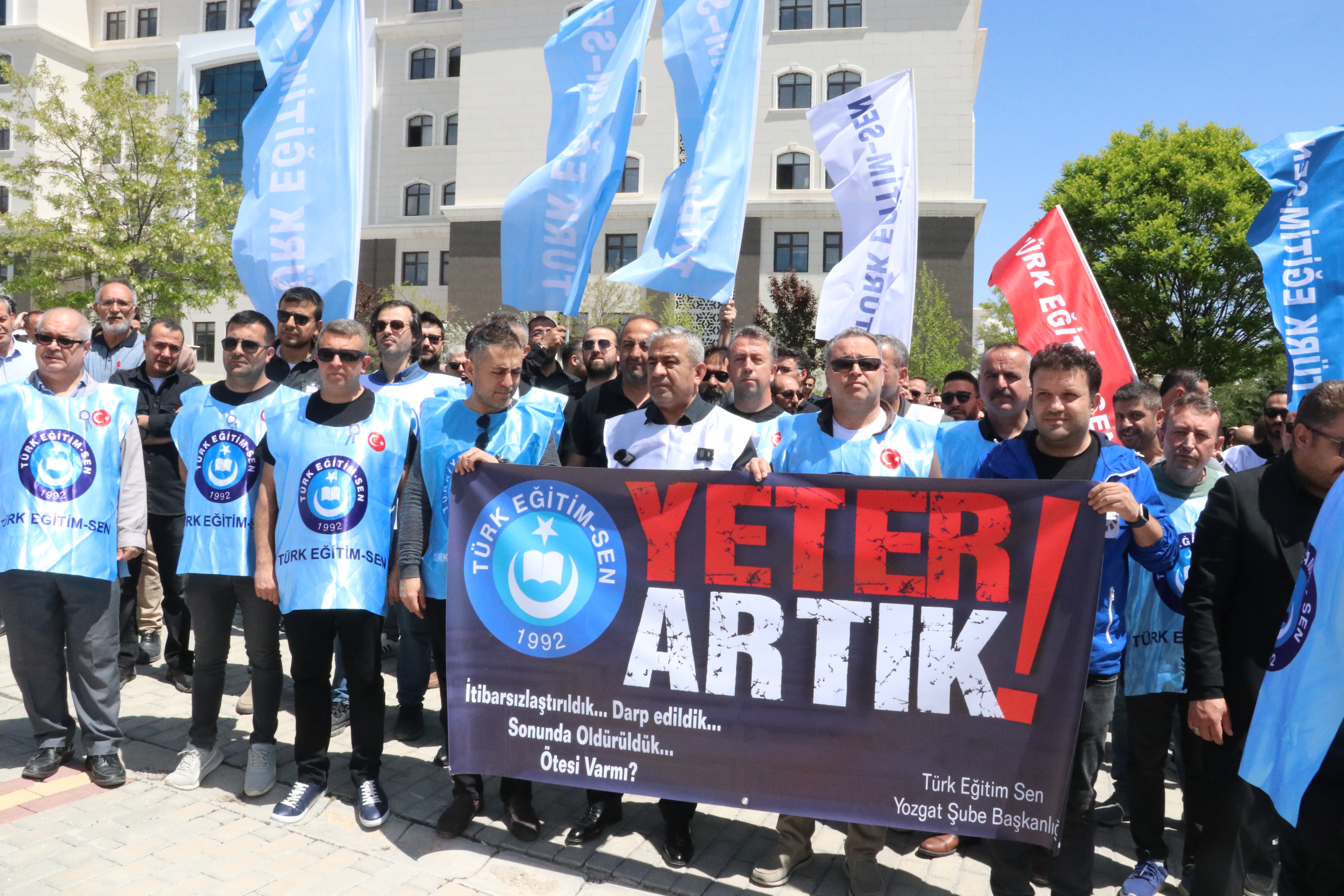 Türkiye Eğitim, Öğretim ve Bilim Hizmetleri Kolu Kamu Çalışanları Sendikası (Türk Eğitim-Sen) üyeleri, okul müdürü İbrahim Oktugan'ın öğrencisi tarafından öldürülmesini protesto etti."Yeter Artık, İtibarsızlaştırıldık, Darp edildik, Sonunda Öldürüldük, Ötesi var mı?" yazılı pankart açan sendika üyeleri, ellerinde "Yeter Artık", "Öğretmenine Dokunma" pankartları açarak sloganlar attı.