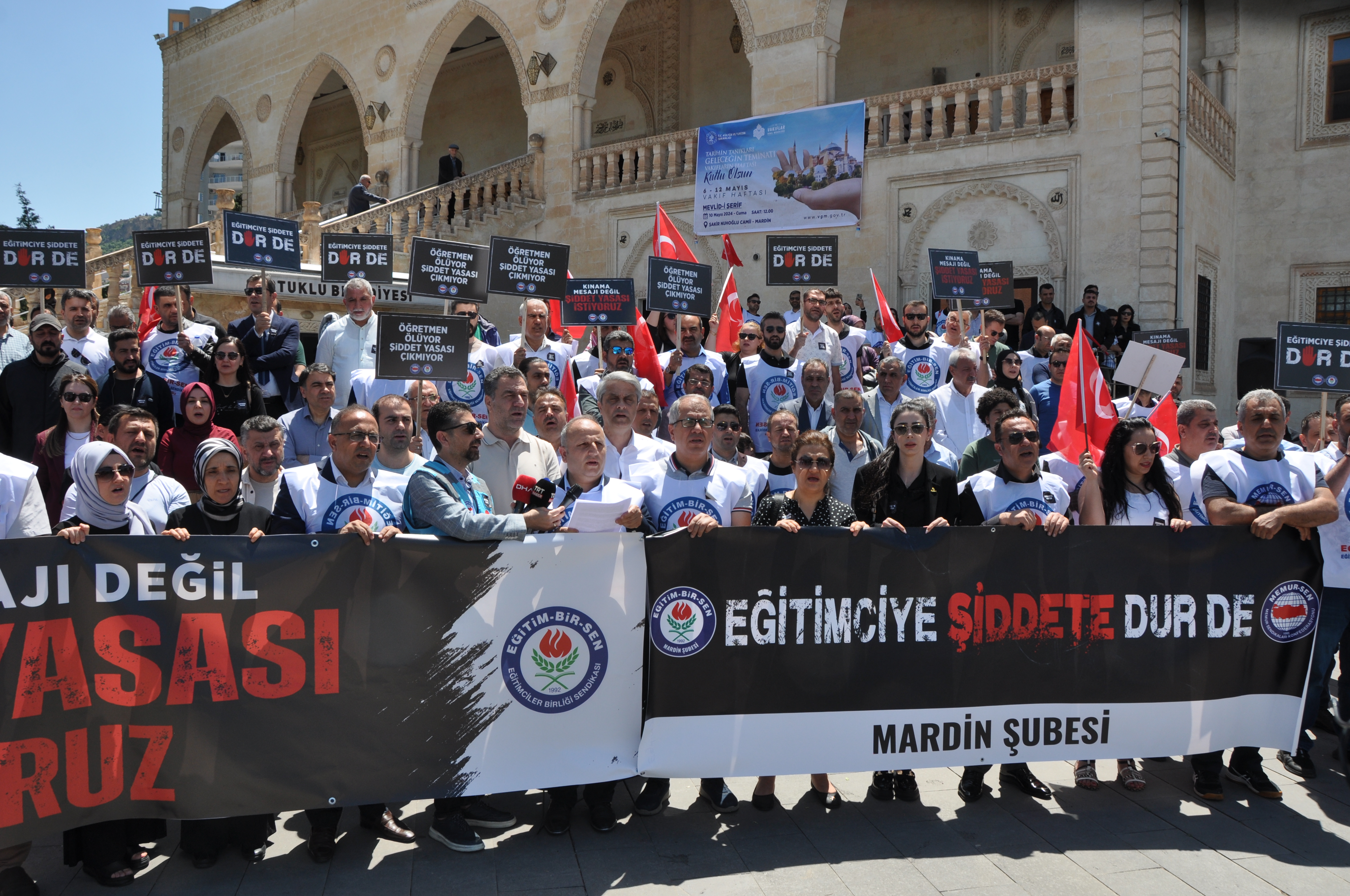 Şanlıurfa'da öğretmenler bağlı oldukları eğitim sendikaları öncülüğünde, eğitimcilere yönelik şiddeti protesto etmek amacıyla 1 günlük iş bırakarak eylem yaptı.