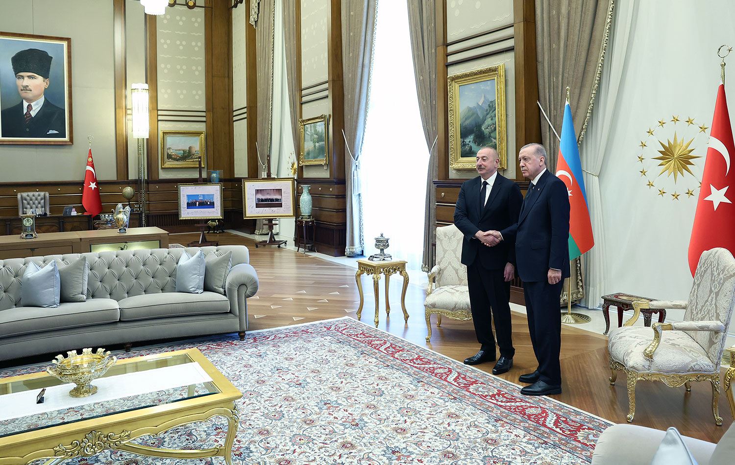 Türkiye Cumhurbaşkanlığı İletişim Başkanlığı’ndan yapılan açıklamaya göre, Erdoğan ve Aliyev, Beştepe’de bir araya geldi.