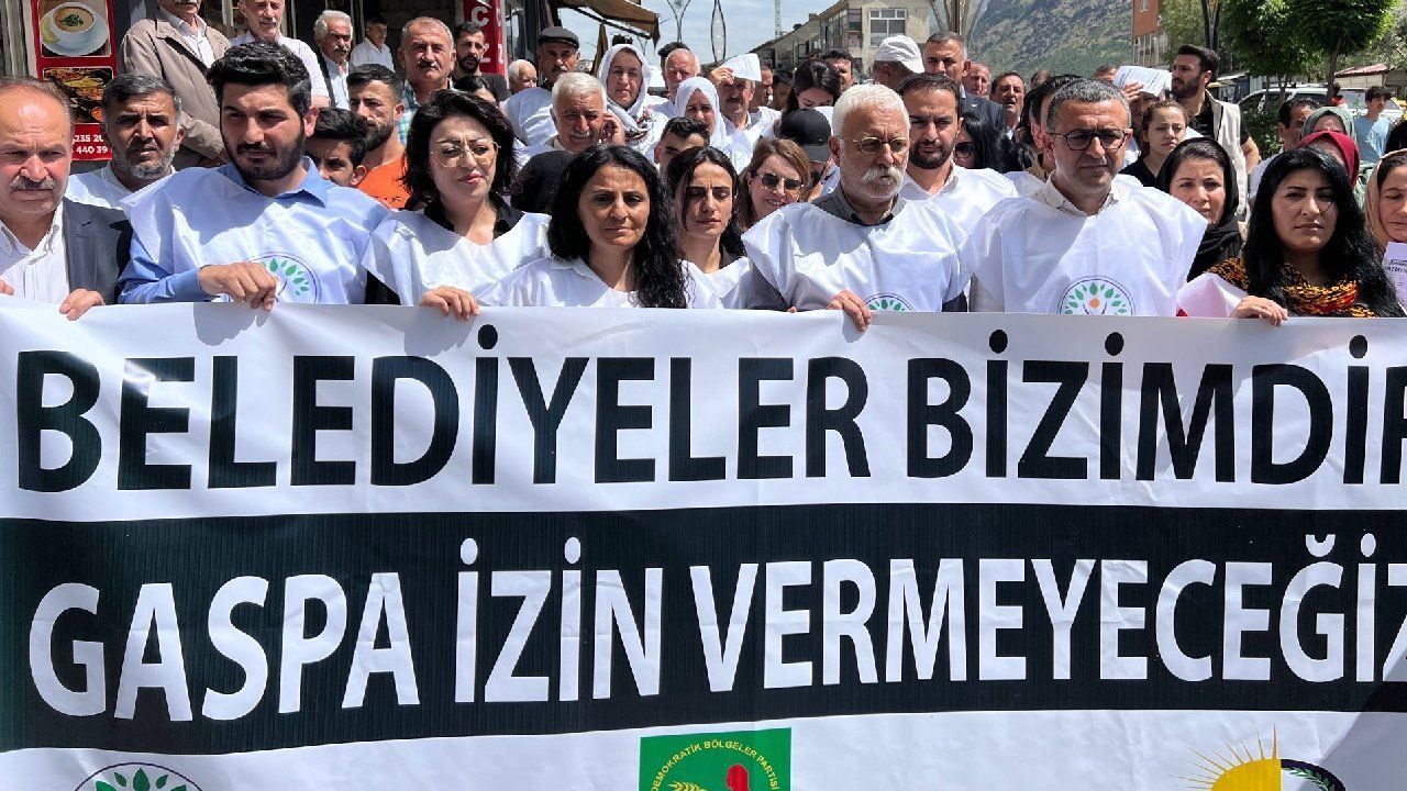 "İrade gaspı ve Kürt halkına karşı düşmanlığa karşı mücadelemiz devam ediyor. Bu demokrasi ve demokratikleşme mücadelesidir. Bu iktidar, 'kayyımsever' bir iktidar. 8 yıldan bu yana kayyım atıyor ve halkın iradesi gasp ediliyor. Kayyım demek talan, hırsızlık ve Kürt halkının iradesini yok saymak demektir. Bunu asla kabul etmeyeceğiz. Her yerde mücadelemizi kararlılıkla sürdüreceğiz. 13 Haziran’da yapacağımız miting için start veriyoruz. Bu mücadele sürecek. Bu mücadele Kurdistan ve Türkiye’nin her yerinde sürecek. Diz çökmeyen, vicdan sahibi herkesle mücadelemizi büyüteceğiz. Bu iktidara sandıkta cevap verdik, sokaklarda da bunun cevabını vereceğiz."