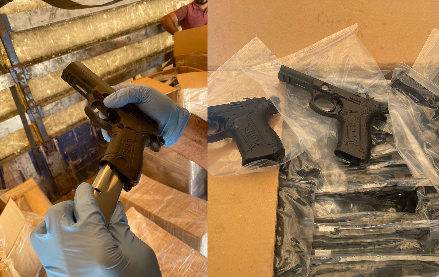 Bunun üzerine araçta arama yapan ekipler, dorseye zulalanmış 440 tabanca gövdesi, 1485 tabanca sürgüsü, 2 bin 500 tabanca şarjörü ele geçirdi.