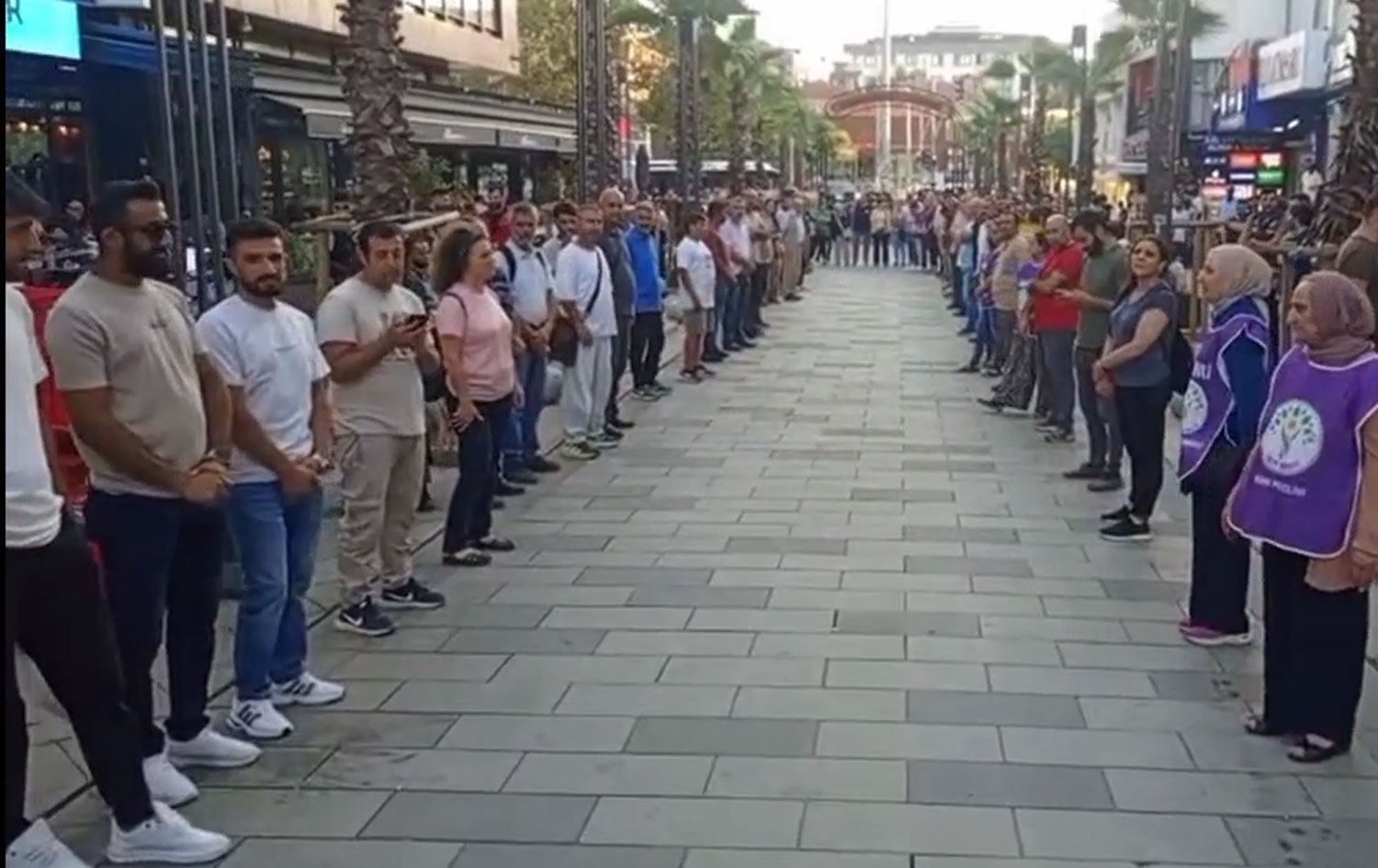 “Barışın gücü ellerimizde, barış ve demokratik toplum içine el ele veriyoruz” pankartının açıldığı etkinlikte “Barışın gücü ellerimizde”, “Barışın gücüyle demokratik topluma”, “Savaşa karşı barışa zincir ol” sloganları atıldı, insan zinciri oluşturuldu.