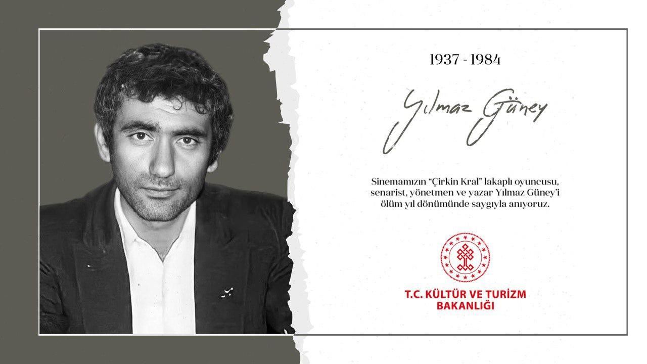 Bakanlık tarafından sinemanın 'Çirkin Kral' lakaplı sanatçısı, oyuncu, yönetmen, senarist ve yazar Yılmaz Güney'in ölüm yıl dönümünde yapılan paylaşımda, "Sinemamızın 'Çirkin Kral' lakaplı oyuncusu, senarist, yönetmen ve yazar Yılmaz Güney'i ölüm yıl dönümünde saygıyla anıyoruz" ifadesine yer verilmişti.