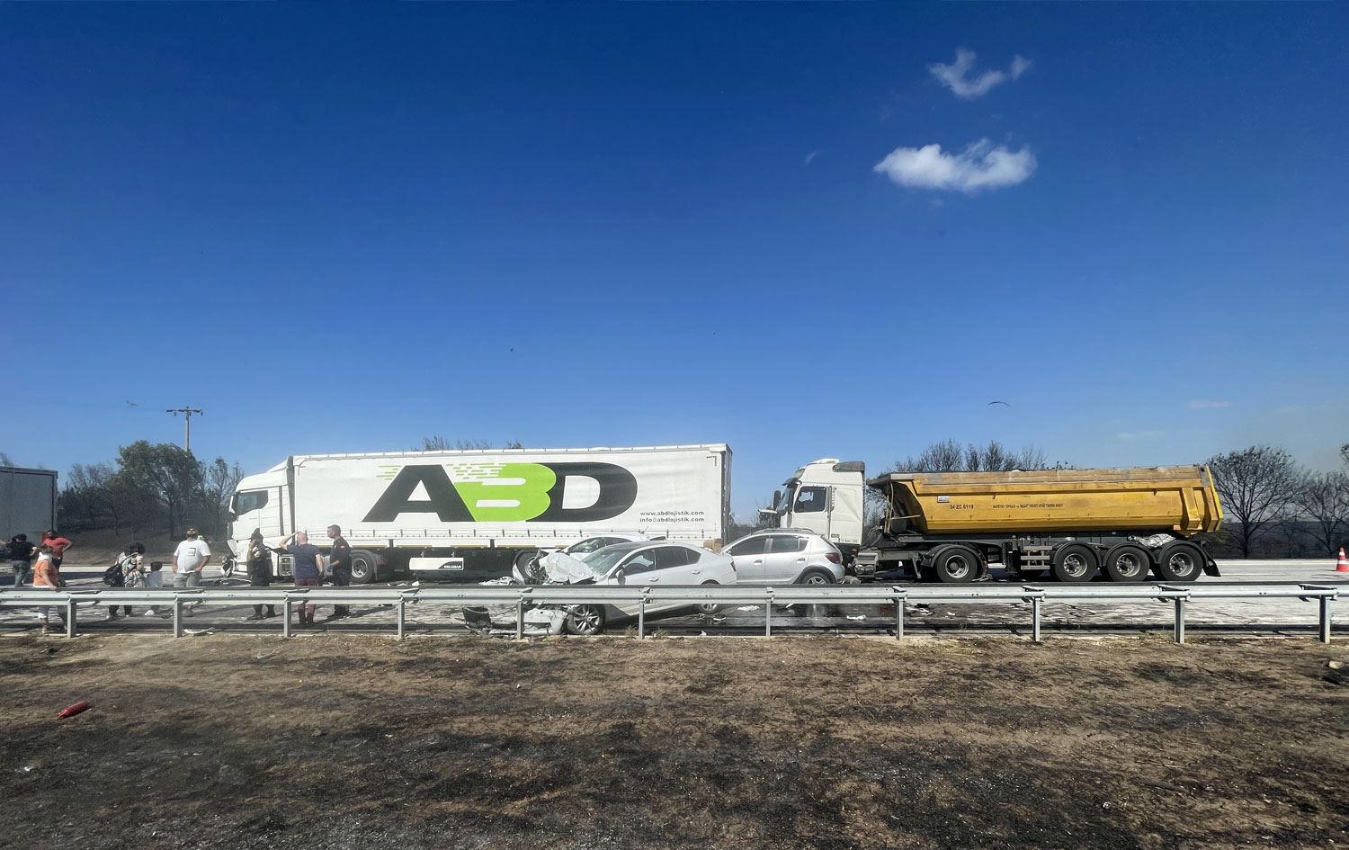 Yangının olduğu bölgede 8 otomobil, 3 tır ve 1 kamyonun karıştığı zincirleme trafik kazası meydana geldi.
