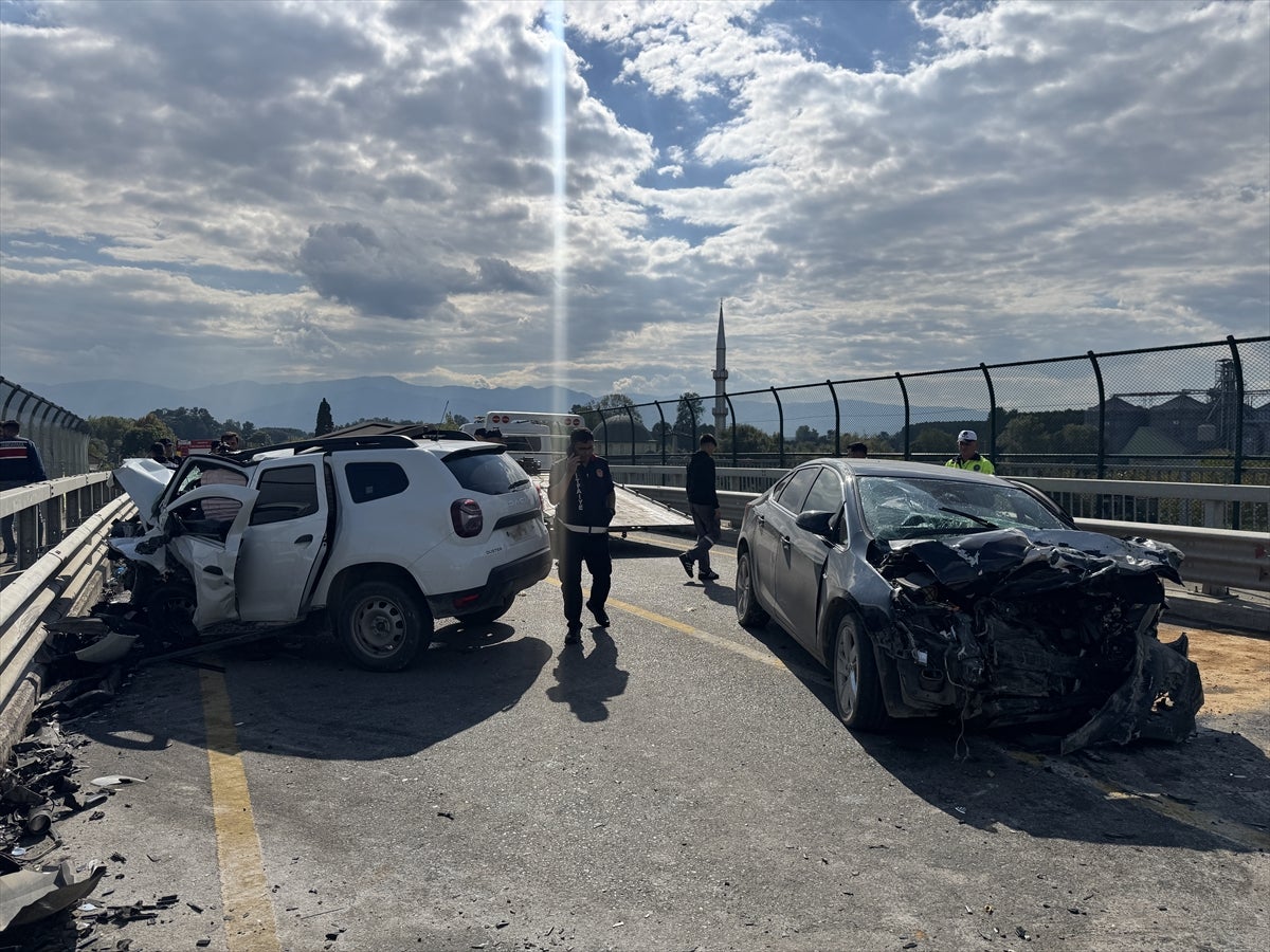 Kuzey Marmara Otoyolu üst geçidinde meydana gelen trafik kazasında, sivil jandarma aracı ile bir başka otomobil kafa kafaya çarpıştı.