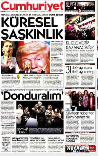 ABD’de mültimilyarder emlak- TV kralı Donald Trump’ın ırkçı, cinsiyet ayrımcısı, İslam karşıtı söylemiyle yakaladığı popülist dalganın etksiyle başkanlık seçimini kazanması, tüm dünyayı şoke etti. Hem ABD hem uluslararası kamuoyu “bildiğimiz dünyanın sonu geldi” tepkisini verdi. Oy kullananlarla yapılan anketler ise seçmenin yüzde 40’ının değişim istediğini, yüzde 70’inin hükümetin işleyişinden mutsuz olduğunu, bu kesim içinden yüzde 25’in hükümete öfkeli olduğunu ortaya koydu. Sonuç da daha önce hiçbir hükümet görevi üstlenmemiş, siyasi doğruculuktan nasiplenmemiş, adaylığını yaptığı Cumhuriyetçi Parti’nin bile dışladığı Trump’ın (70) tarihi zaferi oldu.