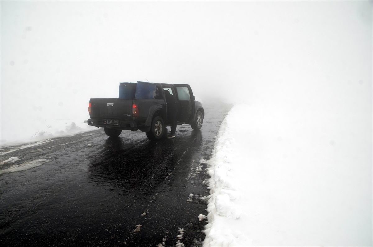 Kentte 10 köy ve 21 mezraya ulaşımın sağlandığı Üçevler grup köy yolunun 2 bin 500 rakımlı Çavuştepe mevkisinde olumsuz hava koşulları ve kar nedeniyle görüş mesafesi 10 metreye kadar düştü.