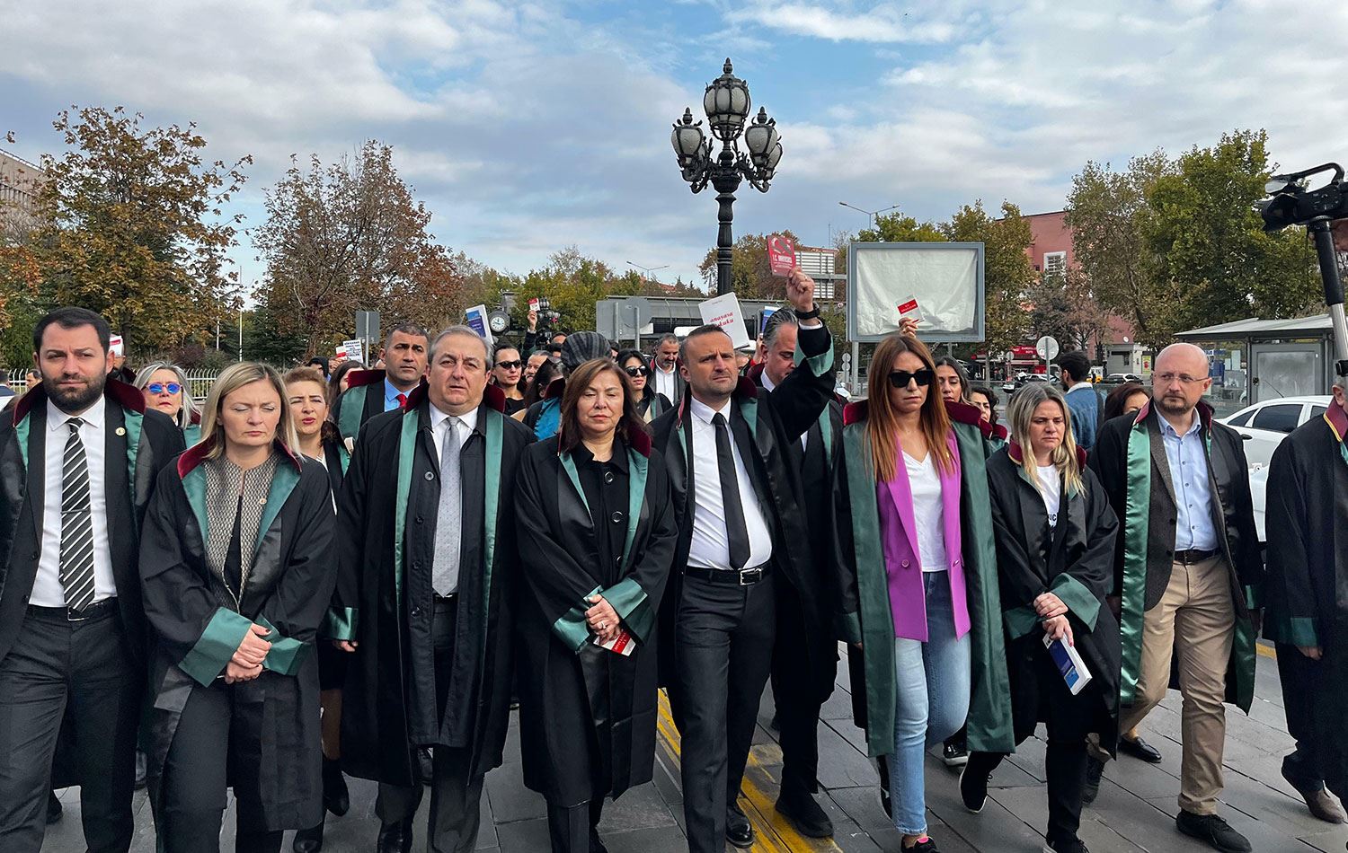 Haber Merkezi - Ankara Barosu’na kayıtlı avukatlar; Yargıtay 3. Ceza Dairesi’nin Anayasa Mahkemesi üyeleri hakkında suç duyurusunda bulunmasını protesto etmek için Sıhhiye Adliyesi’nden Ahlatlıbel’de bulunan Yargıtay’a doğru yürüyüşe başladı.