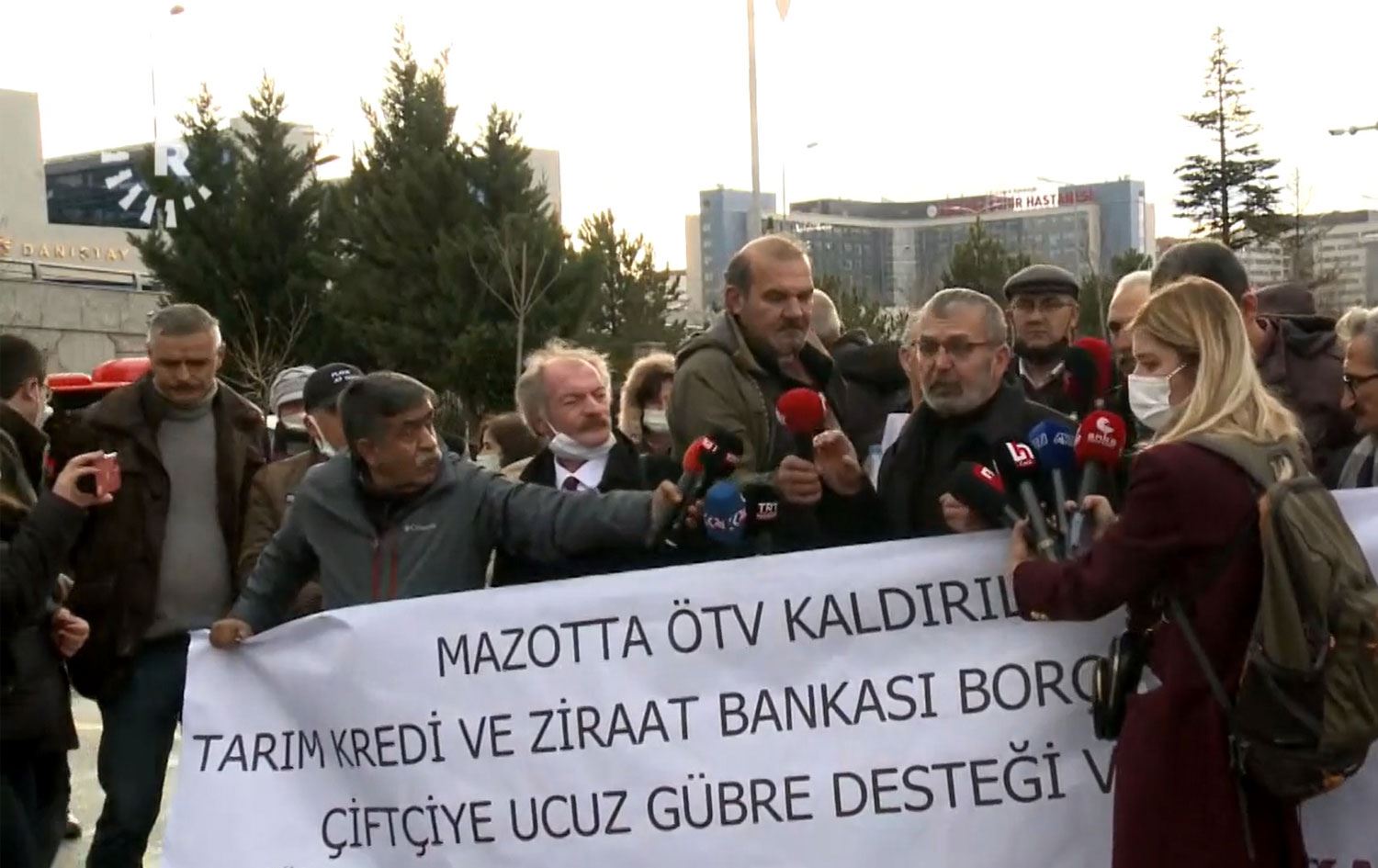 Ankara (Rûdaw) - Türkiye'nin farklı kentlerinden Ankara'ya gelen çiftçiler, Tarım ve Orman Bakanlığı önünden yetkililere seslenerek taleplerini iletti.