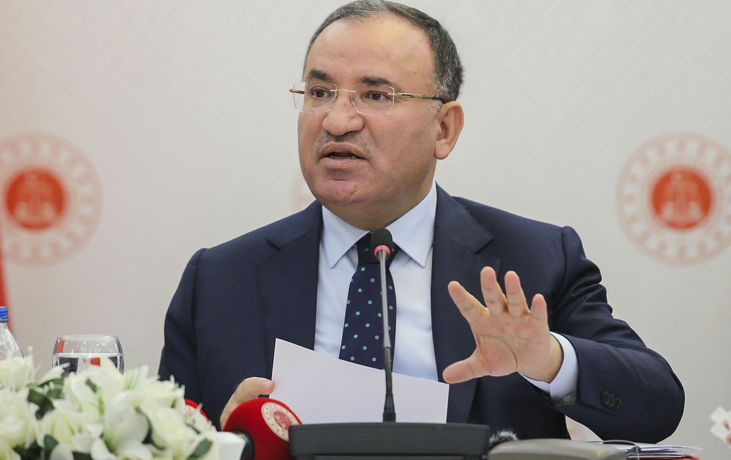 Ulusal Kanal muhabiri, toplantıda Bozdağ'a, “Terör suçlarıyla ilgili pek çok ismin dijital yollarla yani yine liderlik yaptığını görüyoruz. Yani hapsedilen iş aslında hapsedilmemiş oluyor. Örneğin Selahattin Demirtaş sosyal medya üzerinden yine örgütünü yönetmeye ve Türk siyasetine müdahale etmeye çalışıyor. Bu dijital yollarla hapsetmenin de aslında bu konuya ilişkin bir yasal boşluk olduğunu düşünüyor musunuz?” şeklinde bir soru yöneltti.