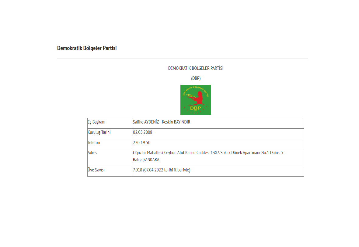 Ayrıca Saliha AYDENİZ ve Keskin BAYINDIR'ın eşbaşkanı olduğu Demokratik Bölgeler Partisi'nin (DBP) 7 bin 18 üyesi bulunuyor.