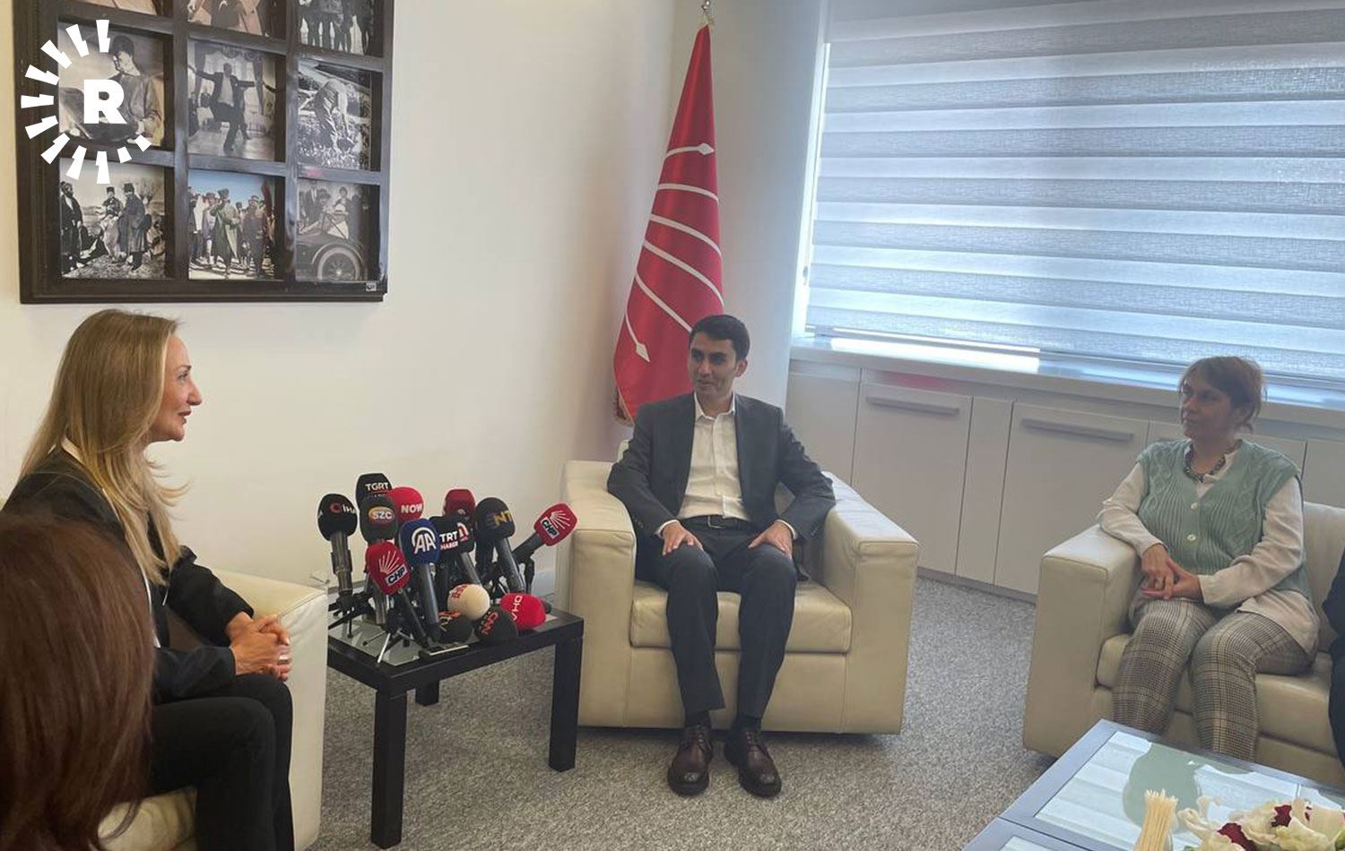 DEM Parti heyetini, CHP Genel Başkan Yardımcısı ve Kadın Kolları Genel Başkanı Aylin Nazlıaka başkanlığında Ankara Milletvekili ve Kadın Kolları Genel Başkan Yardımcısı Aliye Timisi Ersever, PM Üyesi M.Alkım Deniz Aslanı ile Gençlik Kolları Genel Başkan Yardımcısı Onur Topkül’den oluşan heyet karşıladı.