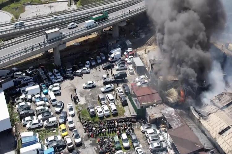 Kısa sürede depoyu saran yangın nedeniyle yoğun duman oluştu.