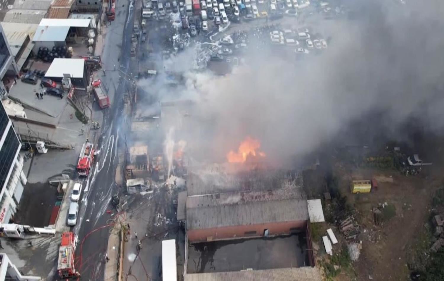 Haber Merkezi - Başakşehir'de, İkitelli Organize Sanayi Bölgesi'nde kimyasal maddelerin bulunduğu depoda çıkan yangına itfaiye ekiplerince müdahale ediliyor.