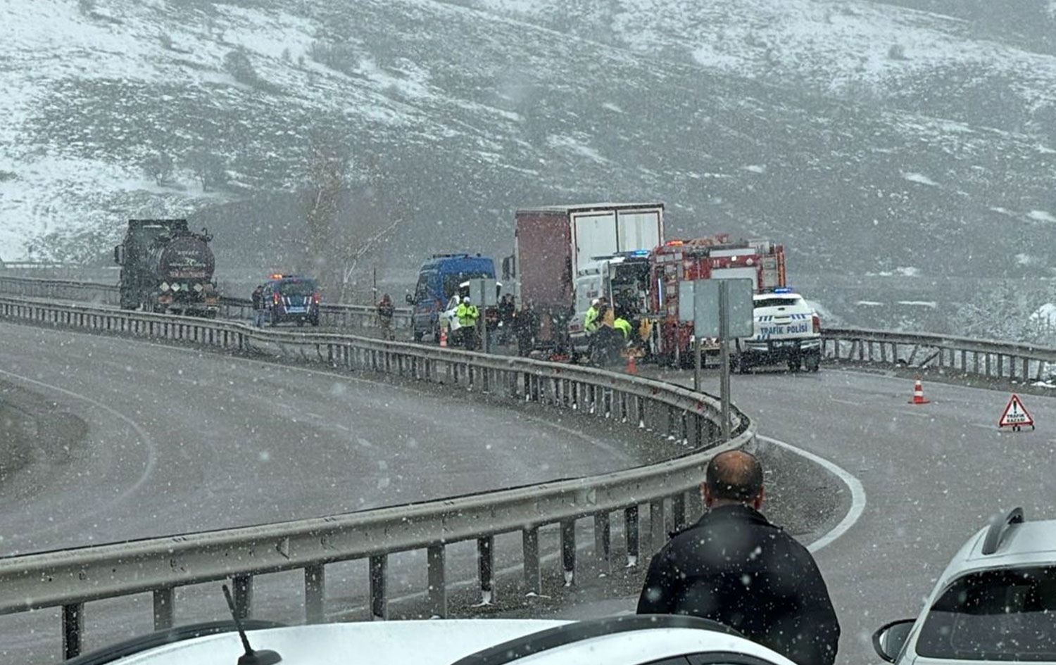 Bir süre sonra yolda seyir halinde bulunan 06 DBB 133 plakalı hafif ticari araç, kazaya karışan İran plakalı tıra çarptı.