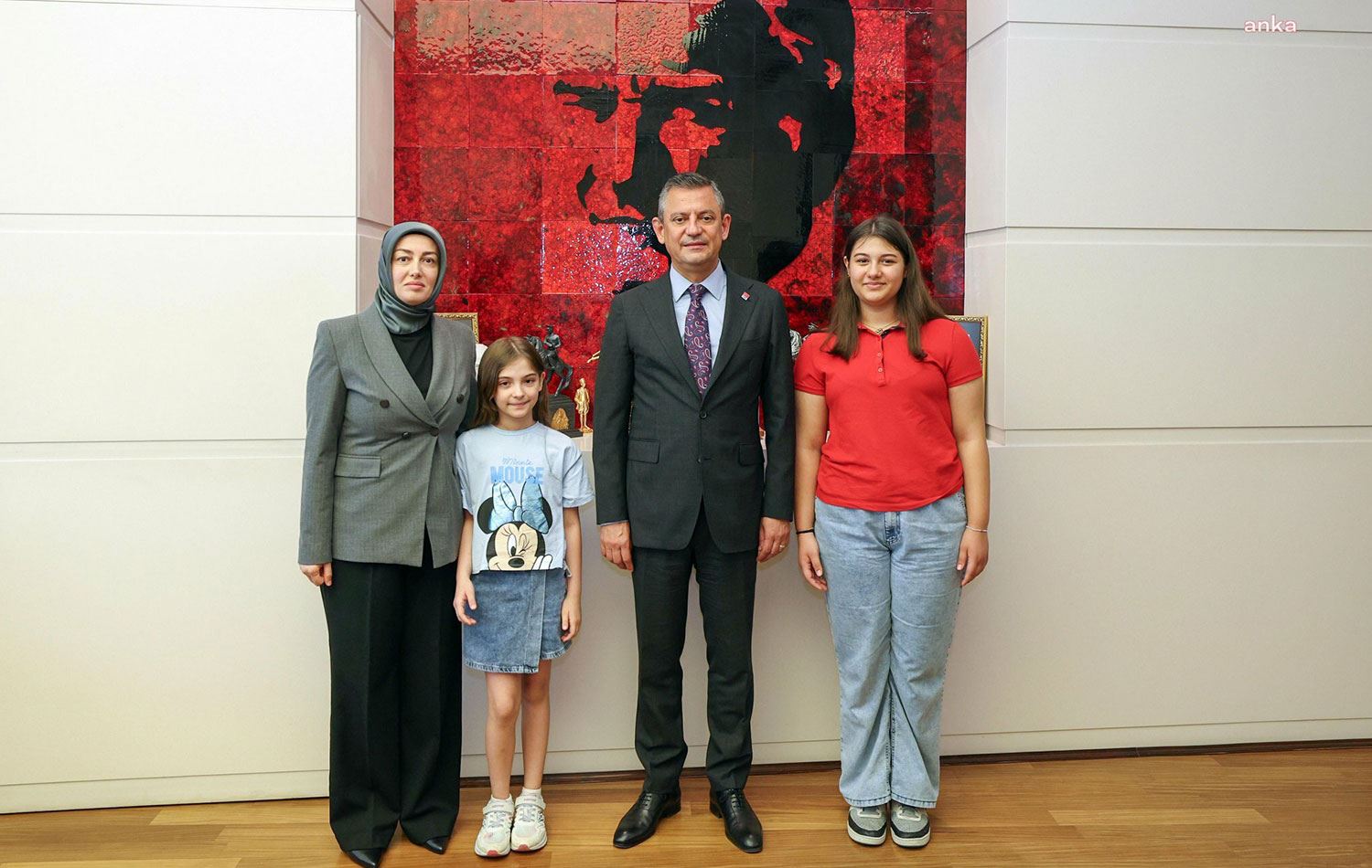 CHP Genel Başkanı Özgür Özel, Ayşe Ateş ve kızlarını parti genel merkezinde ağırladı. / Sosyal medya